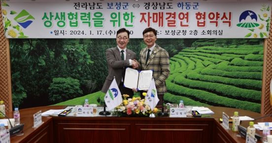 [한국기자연대] 보성군은 17일 전라남도 보성군과 경상남도 하동군이 보성군청 2층 소회의실에서 차 산업 발전을 위한 자매결연 협약을 체결했다고 밝혔다.