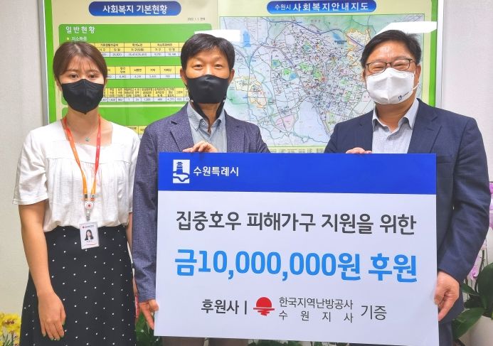 수원시는 한국지역난방공사 수원지사의 후원금을 폭우 피해를 본 가구에 배분할 예정이다.