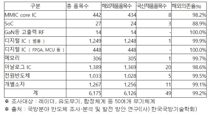 현재 국방반도체의 98% 이상이 해외에서 설계 및 생산되어 국내 개발된 무기체계에 적용되고 있다. 이는 지난 2021년과 같은 반도체 공급망 위기가 찾아올 경우 국가 안보에 필수적인 무기체계의 적시 전력화가 제한될 수 있음을 의미한다. 또한, 유·무인 복합체계 등 인공지능(AI)이 탑재된 무기체계 개발 및 전력화 과정에서 국방반도체의 수요는 기하급수적으로 증가할 것으로 예상되며, 2027년까지 방산 4대 강국으로의 도약을 위해 국방반도체의 국산화는 필수적이다.