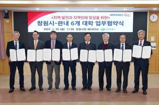 [한국기자연대] 창원특례시는 22일, 우리 지역 6개 대학과 ‘지역 발전과 지역인재 양성을 위한 업무협약’을 체결했다.