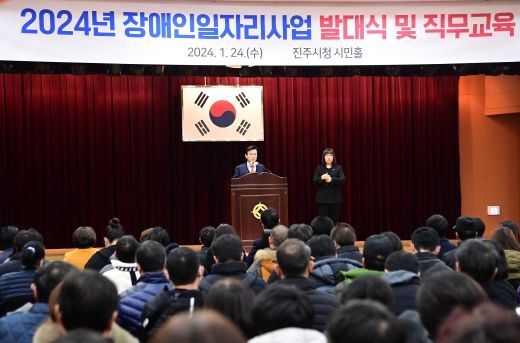 [한국기자연대] 진주시는 24일 시청 시민홀에서 장애인들의 사회참여 기회 확대를 위해 ‘2024년 장애인일자리사업 발대식’을 개최했다.