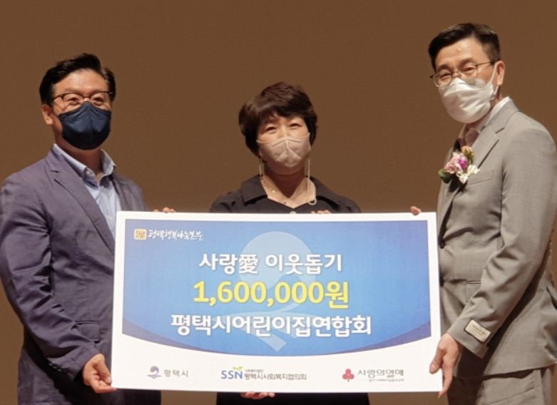 [한국기자연대] 평택시어린이집연합회는 지난 19일 진행한 교직원 힐링 연수에서 평택행복나눔본부로 사랑의 이웃돕기 성금 160만원을 전달했다.