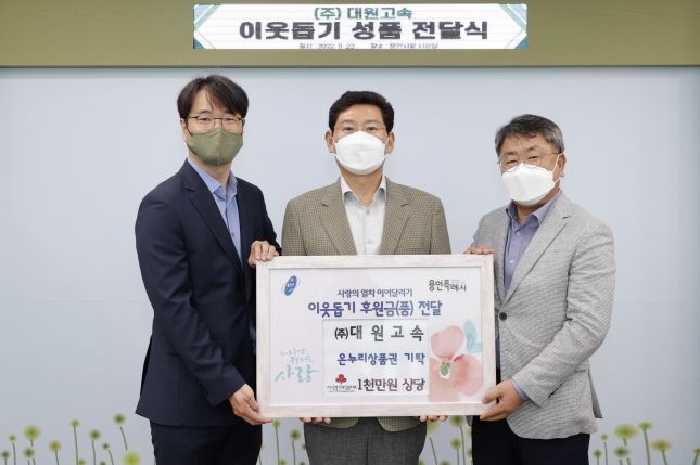 온누리상품권은 허덕행 대원고속 실장 등이 직접 시청을 방문해 이상일 용인특례시장에게 전달했다.