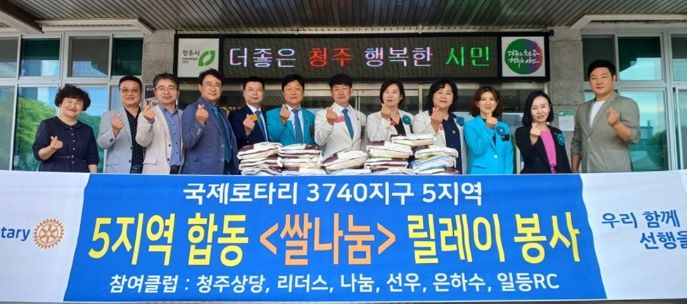 [한국기자연대] 청주국제로타리 3740지구 5지역 합동(청주상당, 리더스, 나눔, 선우, 은하수, 일등RC)은 19일 청주시 아동복지과를 찾아 드림스타트 가정에 전해달라며 쌀 200kg을 전달했다.