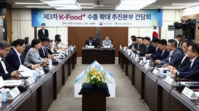 [한국기자연대] 농림축산식품부 송미령 장관은 8월 20일, 서울 에이티(aT) 센터에서 주요 농식품 및 농산업 수출기업, 유관기관과 함께 2025년 제3차'케이-푸드 플러스(K-푸드+) 수출확대 추진본부 간담회'를 개최했다.