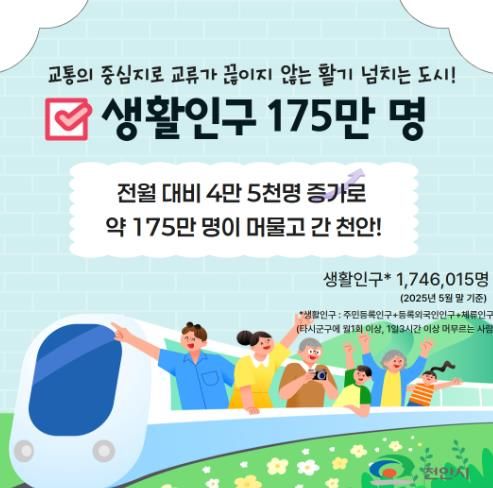5월 말 기준 천안시의 생활인구는 174만 6,015명으로 집계됐다.
