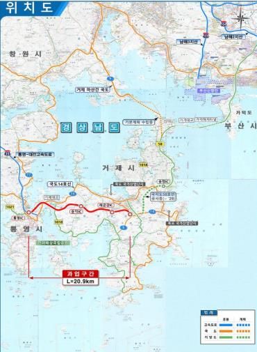 이번 사업은 통영 용남면에서 거제 상문동을 연결하는 총연장 20.9km의 고속도로 건설로, 총사업비 약 1조 5천억 원이 투입된다.