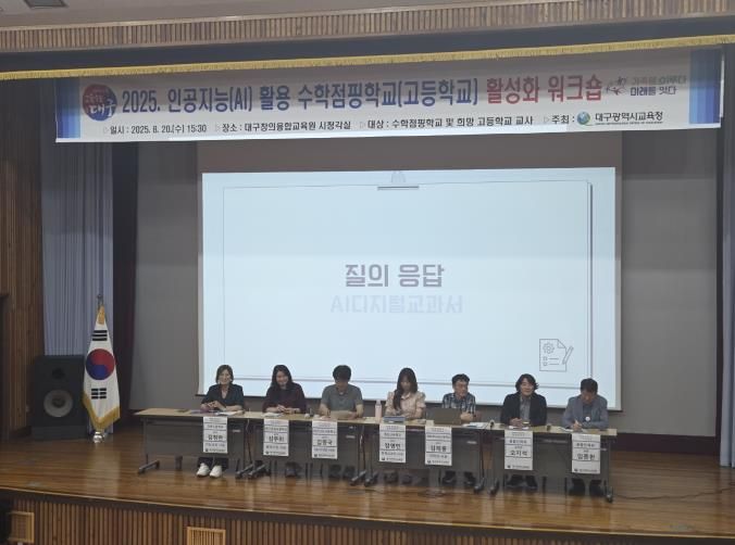 [한국기자연대] 대구시교육청이 8월 20일·26일·28일에 대구창의융합교육원에서 각 일자별 고등학교·중학교·초등학교 교원을 대상으로 ‘2025 인공지능(AI) 활용 수학점핑학교 활성화 워크숍’을 개최한다.