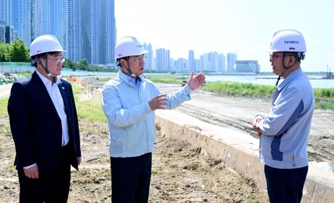 유정복 시장은 공사 관계자들로부터 사업 추진 현황과 향후 계획을 보고 받은 뒤, 공사 현장을 직접 둘러보며 안전관리 실태를 꼼꼼히 살폈다.