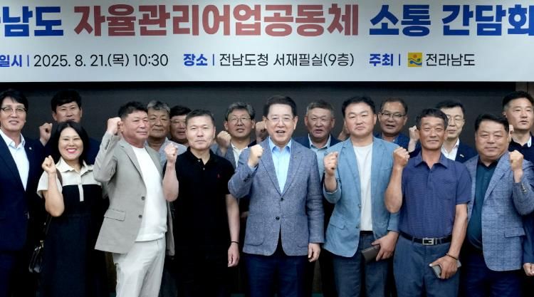 [한국기자연대] 김영록 전라남도지사는 21일 도청 서재필실에서 전남도 자율관리어업공동체 임원들과 소통간담회를 열어 자율관리공동체의 활성화 방안을 모색하고, 고령화·일손 부족 등 어촌 현장 애로사항을 청취하며 대안을 논의했다.