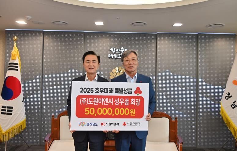 [한국기자연대] 충남도는 ㈜도원이엔씨로부터 호우 피해복구 지원 성금 5000만원을 전달받았다고 21일 밝혔다.