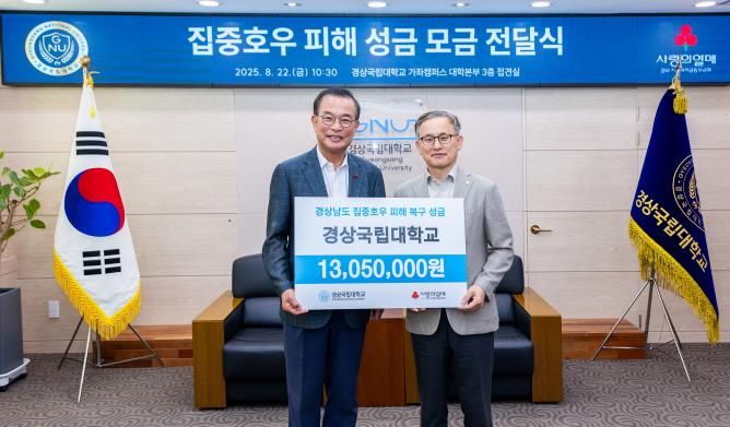 [한국기자연대] 경상국립대학교는 7월 16~20일 집중호우에 따른 수해 지역 및 이재민을 돕기 위한 성금 1305만 원을 경남사회복지공동모금회에 전달했다.