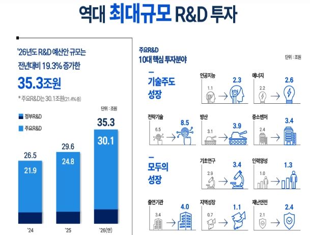 [한국기자연대] 과학기술정보통신부는 8월 22일 대통령실에서 개최된 국가과학기술자문회의 전원회의에서 '2026년도 국가연구개발사업 예산 배분·조정(안)'(부제: 이재명 정부 한국형 연구개발 추진전략'K-R&D 이니셔티브')을 심의·의결했다고 밝혔다.