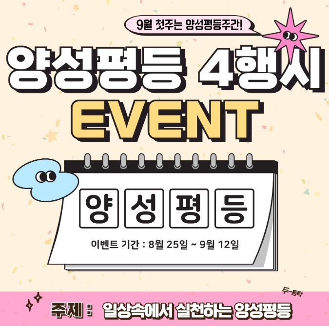 이번 이벤트는 ‘일상에서 실천하는 양성평등’을 주제로 8월 25일부터 9월 12일까지 3주간 진행된다.