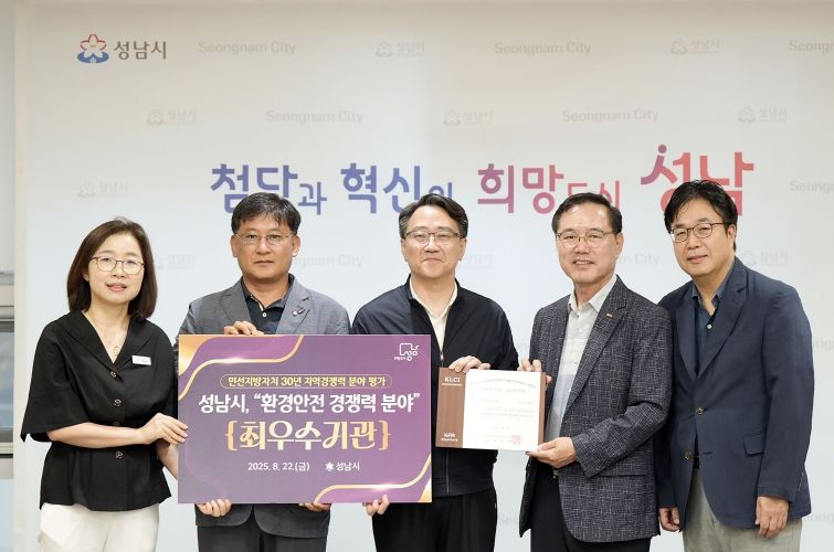 [한국기자연대] 성남시는 한국공공자치연구원이 주최한 ‘민선지방자치 30년 지역경쟁력 평가’에서 환경안전 경쟁력 분야 전국 1위를 차지해 최우수 인증패를 받았다고 25일 밝혔다.