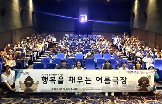 [한국기자연대] 대구 달서구 달서행복지역자활센터는 8월 22일 자활사업 참여자들을 위한 문화체험 프로그램 '행복을 채우는 여름 극장'을 롯데시네마 상인점에서 개최했다.