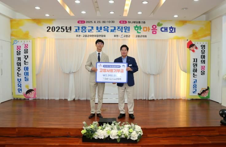 [한국기자연대] 고흥군은 지난 23일 고흥군 어린이집연합회 주관으로 열린 '2025년 보육교직원 한마음대회'에서 보육교직원 개인의 마음을 담은 고향사랑기부금 200만 원을 모금했다고 밝혔다.