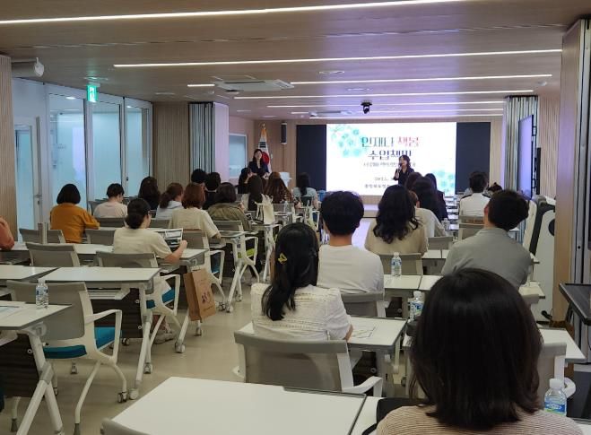 [한국기자연대] 청주교육지원청은 8월 25일 충북교육도서관에서 관내 초·중학교 독서교육 담당 교원을 대상으로'수업책맛(수업에 책의 맛을 더하다)'연수를 실시했다.
