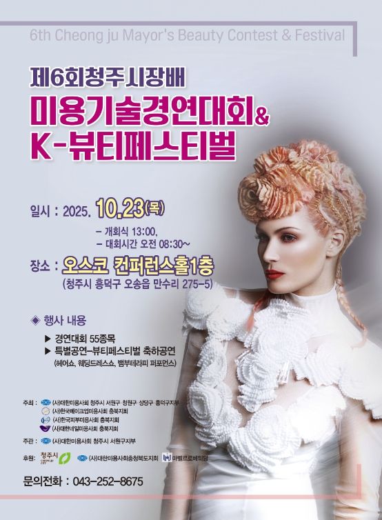 [한국기자연대] 청주시가 후원하고 (사)대한미용사회 청주시서원구지부가 주관하는 제6회 청주시장배 미용기술경연대회·K-뷰티페스타가 10월 23일 오송 오스코(OSCO)에서 개최된다.