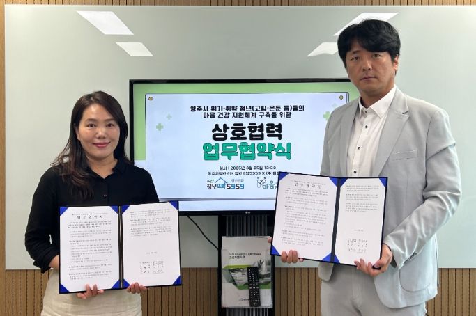 장은성 청년뜨락5959 센터장은 “이번 협약을 통해 청주시 위기·취약 청년들의 마음 건강 지원체계가 강화되길 바라며 앞으로도 지역사회 청년들에 대한 지원을 위해 노력하겠다”고 말했다.