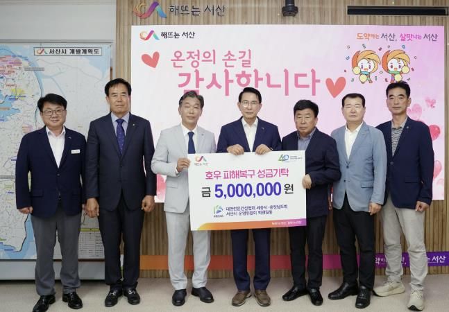 [한국기자연대] 충남 서산시는 대한전문건설협회 세종시·충청남도회, 서산시운영위원회가 25일 집중호우 피해 복구를 위해 5백만 원의 성금을 전달했다고 밝혔다.