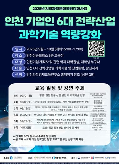 대상은 지역 기업 재직자와 대학(원)생 등 미래 과학기술에 관심 있는 인천 시민이다.