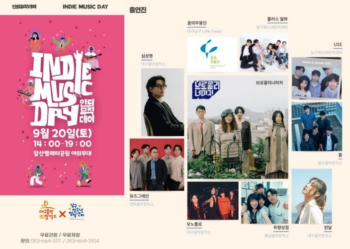 조재구 남구청장은 “'인디뮤직데이'가 가족과 이웃이 함께 즐기는 특별한 가을 피크닉이 될 것이다.”라며, “많은 시민들의 관심과