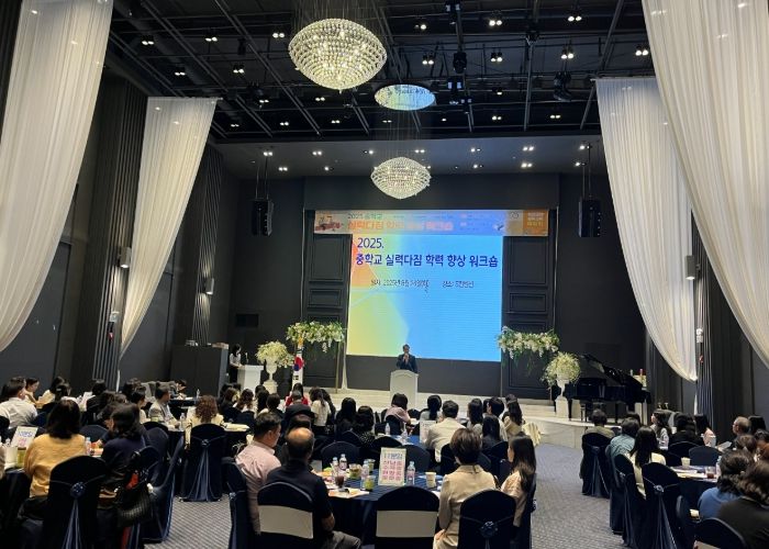 [한국기자연대] 청주교육지원청은 8월 26일, 8월 27일 2일 동안 청주 S컨벤션에서 2025. 중학교 실력다짐 학력 향상 워크숍을 연다. 이번 워크숍에는 관내 중학교 교감, 교육과정‧평가‧학력 담당 교사 230여 명이 참석한다.