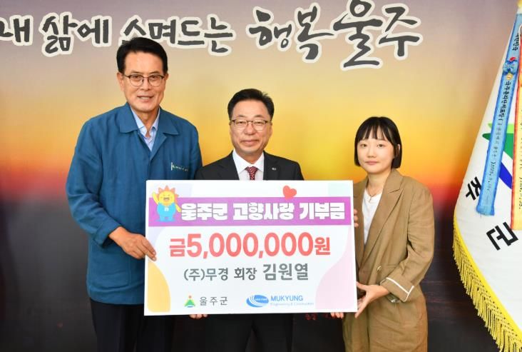 울주군은 이날 군청 소회의실에서 이순걸 군수, ㈜무경 김원열 회장과 김보민 차장, 관계 공무원 등이 참석한 가운데 고향사랑기부금 전달식을 가졌다.