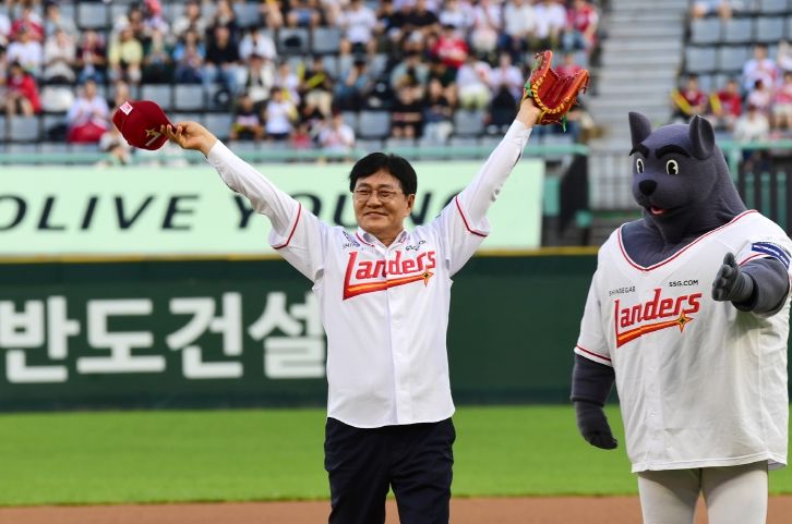[한국기자연대] 박용철 강화군수는 지난 26일 인천 문학야구장에서 열린 SSG 랜더스의 홈경기에서 시구자로 나섰다.