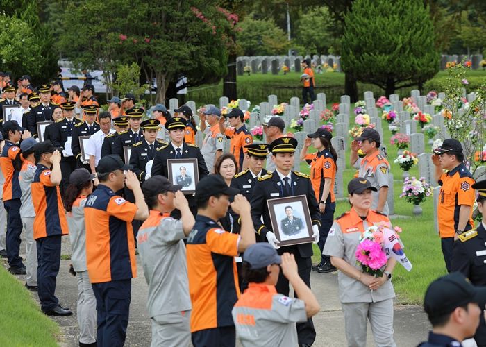 [한국기자연대] 서울시 소방재난본부는 8월 26일 국립대전현충원(소방공무원 묘역)에서 순직 소방공무원 6位(위)에 대한 합동 안장식을 거행했다고 밝혔다.