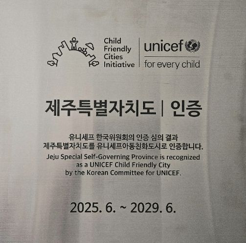 [한국기자연대] 제주특별자치도가 유니세프 한국위원회로부터 아동친화도시(Child Friendly Cities) 인증을 획득했다. 부산, 대구, 광주, 세종에 이은 다섯 번째 광역지방자치단체이자, 도 단위 광역 지자체로는 전국 최초다.