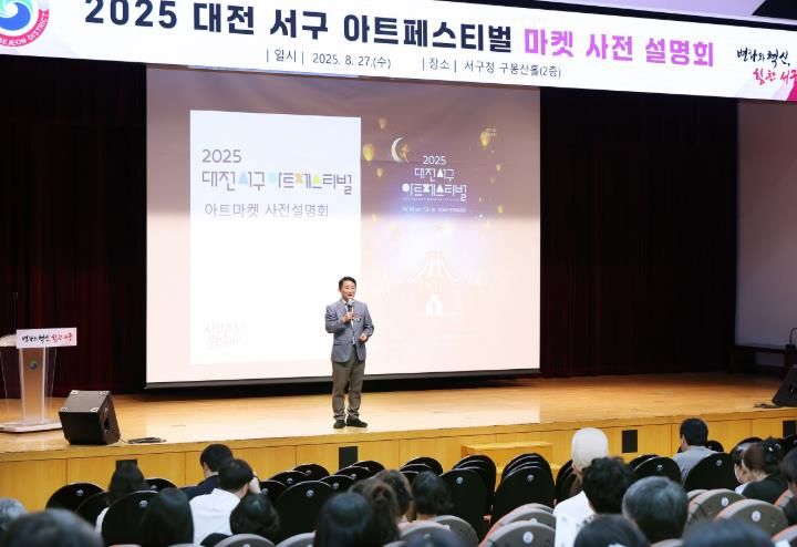 [한국기자연대] 대전 서구는 10월 10일부터 12일까지 샘머리·보라매공원 일원에서 열리는 ‘2025 대전 서구 아트페스티벌’의 성공적 개최를 위해 지난 27일 마켓 참여자 사전 설명회를 열었다.