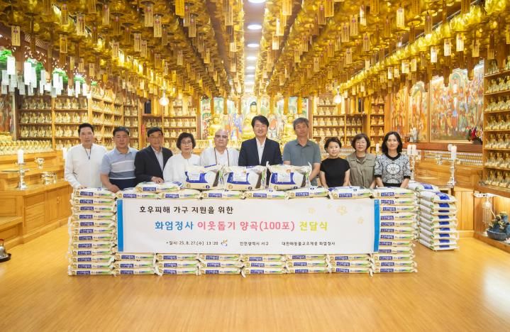 [한국기자연대] 인천 서구는 27일, 화엄정사가 양곡 100포를 기부했다고 28일 밝혔다. 이날 전달받은 양곡은 호우 피해를 입은 관내 취약계층 대상자에게 전달될 예정이다.