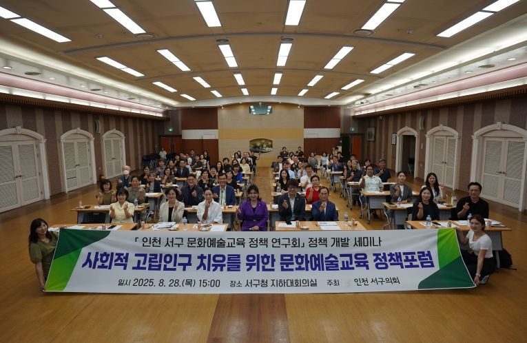 [한국기자연대] 인천 서구의회 의원연구단체 '서구 문화예술교육 정책 연구회(대표의원 김미연)'는 28일 ‘사회적 고립인구 치유를 위한 문화예술교육 정책포럼’을 개최했다.