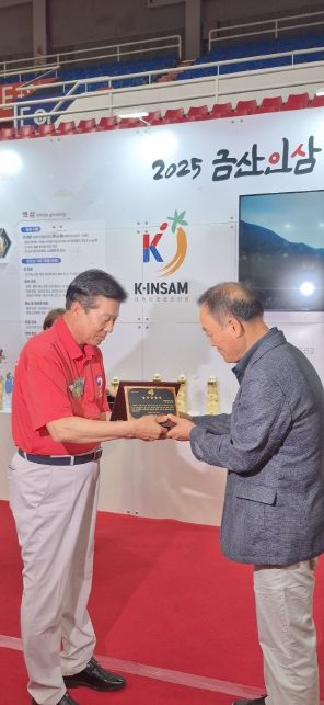 [한국기자연대] 금산군은 8월 28일 2025 금산인삼·푸드 울산 특별전 행사장에서 금산인삼의 우수성을 울산·경남 지역에 홍보하고 소비 활성화 등에 기여한 서상찬 강남기계공업(주) 회장에게 명예군민증을 수여했다.