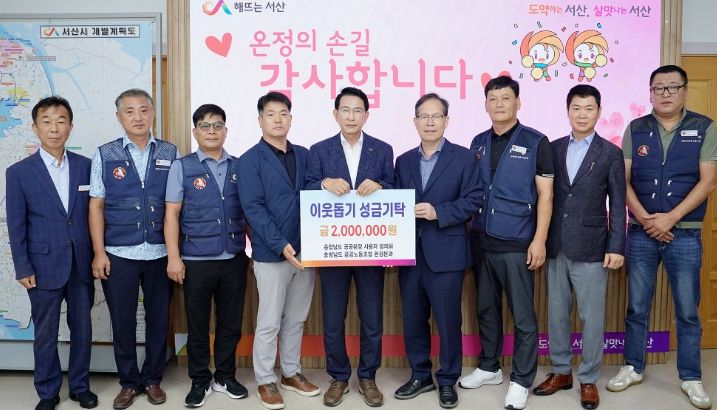 [한국기자연대] 충남 서산시는 충남공공환경사용자협의회, 충남공공노조 환경미화분과가 이웃돕기 성금 2백만 원을 기탁했다고 29일 밝혔다.