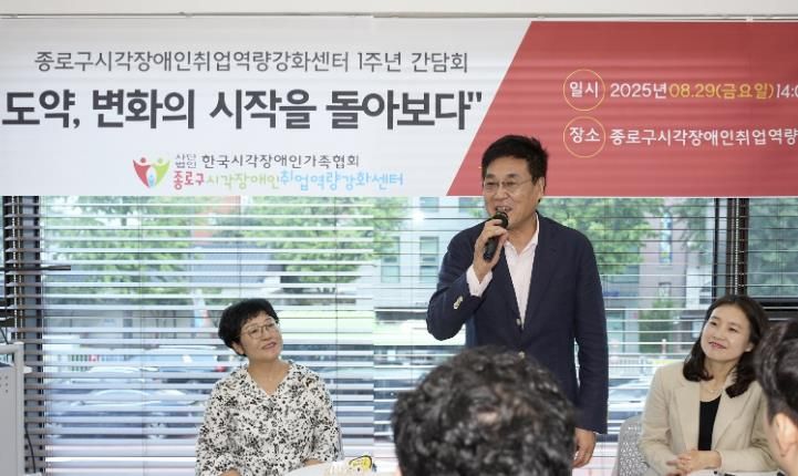 [한국기자연대] 종로구는 8월 29일, 구립 ‘시각장애인 취업역량강화센터’(자하문로 59, 2층) 개소 1주년을 맞아 기념행사를 개최하고 그간의 성과와 향후 운영 방향을 공유했다.