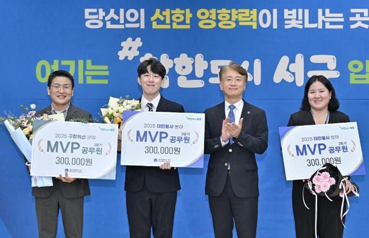 김이강 서구청장은 “주민을 위해 묵묵히 헌신한 직원들의 열정과 성과가 서구 발전의 밑거름이 되고 있다”며 “앞으로도 노력하는 사람이 존중받는 조직문화를 바탕으로 따뜻한 행정과 혁신적인 구정을 실현해 나가겠다”고 말했다.