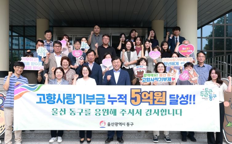 한편, 울산 동구는 고향사랑기부제 누적 기부금 5억 원 달성을 기념해, 오는 9월 15일부터 10월 31일까지 ‘감사이벤트’를 진행할 예정이다.