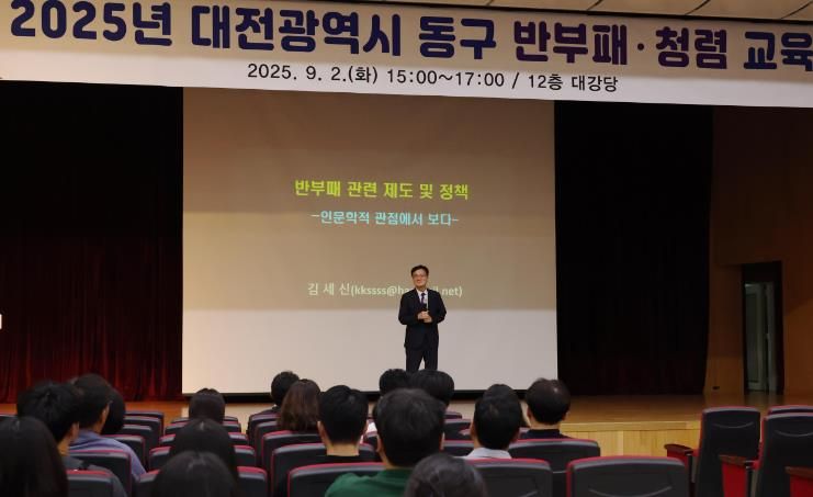 [한국기자연대] 대전 동구는 2일 구청 대강당에서 전 직원을 대상으로 ‘2025년 반부패·청렴 교육’을 실시했다고 밝혔다.