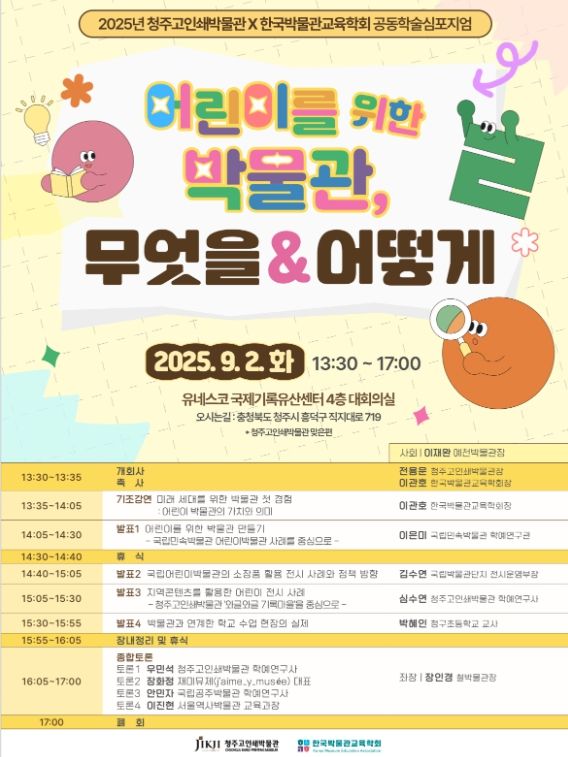 전용운 청주고인쇄박물관장은 “오늘 논의된 결과들이 박물관 현장에서 실제로 적용돼, 어린이 관람객에게 더욱 의미 있는 경험의 장을 제공할 수 있도록 하겠다”고 밝혔다.