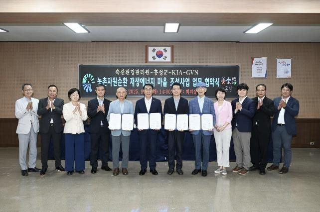 [한국기자연대] 홍성군는 지난 2일 홍성군청에서 기아, 축산환경관리원, 글로벌비젼네트워크와 함께 ‘농촌자원순환 재생에너지 마을 조성’ 사업 추진을 위한 업무협약(MOU)을 체결하고, 사업단을 공식 발족했다.