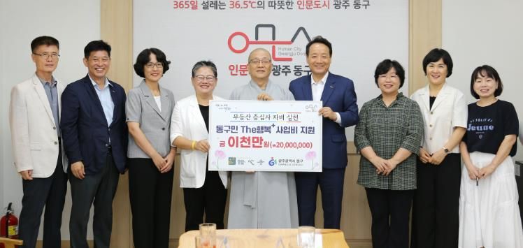 [한국기자연대] 광주 동구는 무등산 증심사로부터 지역사회 취약계층과 주민복지 향상 사업 추진을 위한 후원금 2천만 원을 기탁받았다고 밝혔다.