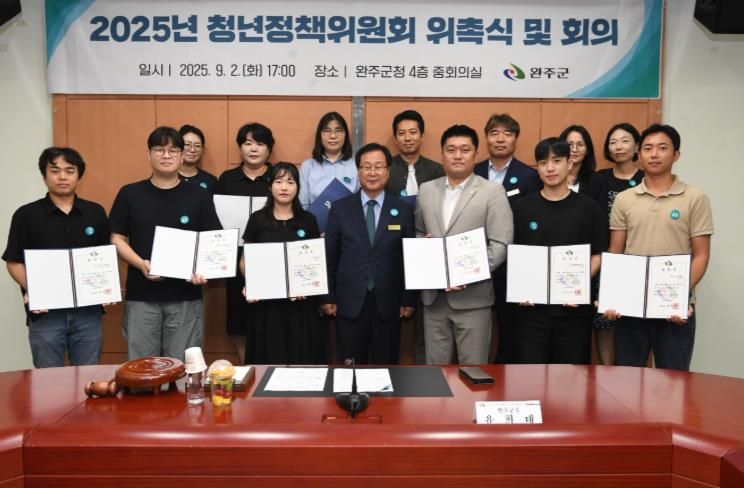 지난 2일 완주군은 청년정책 전반을 심의하고 자문하는 청년정책위원회를 새롭게 구성하고 위촉식과 첫 회의를 열었다.