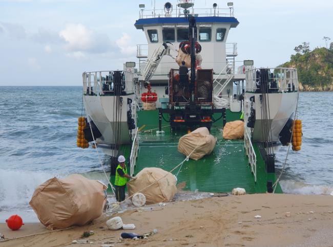 이날 옹진청정호는 오전 6시에 현장에 도착해 집게차 등 장비들을 동원하여 2시간 반 동안 총 톤백마대 50여개 분량의 폐스티로폼, 폐플라스틱, 폐그물, 밧줄 등 다양한 해양폐기물 4.42톤의 해양폐기물을 수거했다.