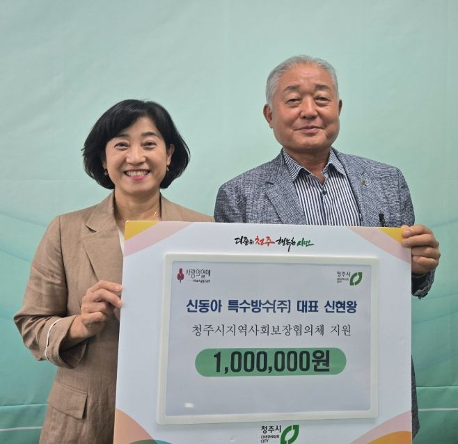 [한국기자연대] 신동아 특수방수(주)(대표 신현왕)은 3일 청주시청을 방문해 청주시지역사회보장협의체 지원을 위한 성금 100만원을 기탁했다.
