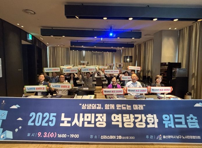 [한국기자연대] 울산 남구 노사민정협의회)는 3일 신라스테이호텔 회의장에서 ‘2025 노사민정 역량강화 워크숍’을 개최했다.