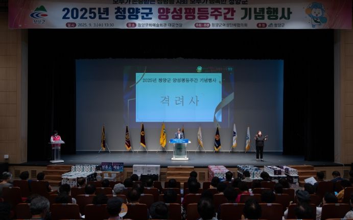 [한국기자연대] 청양군은 청양군여성단체협의회(회장 손미옥) 주최로 지난 3일 청양문화예술회관 대공연장에서 ‘모두가 존중받는 성평등 사회, 모두가 행복한 청양’ 슬로건 아래 청양군 양성평등주간 기념행사를 개최했다.