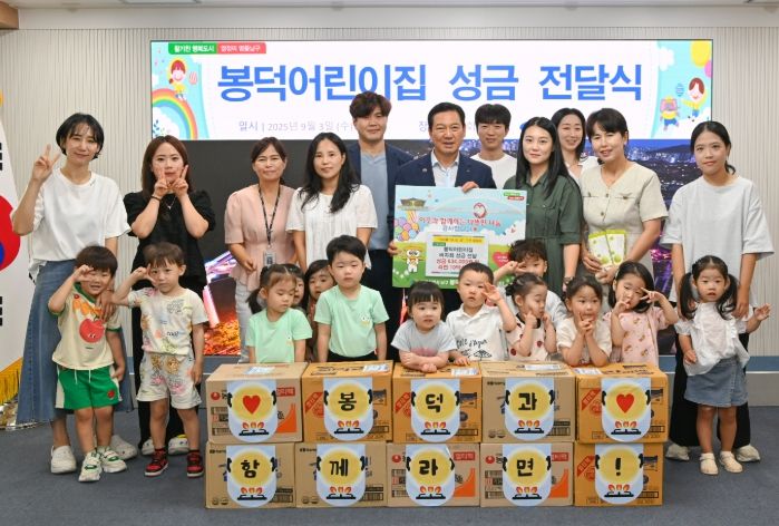 조재구 남구청장은 “아이들, 학부모, 어린이집 교사들이 함께 모은 성금이라 더욱 뜻이 깊다.”라며, “따뜻한 마음을 모아 마련된 성금은 필요한 분들을 위해 소중히 사용하겠다.”라고 말했다.